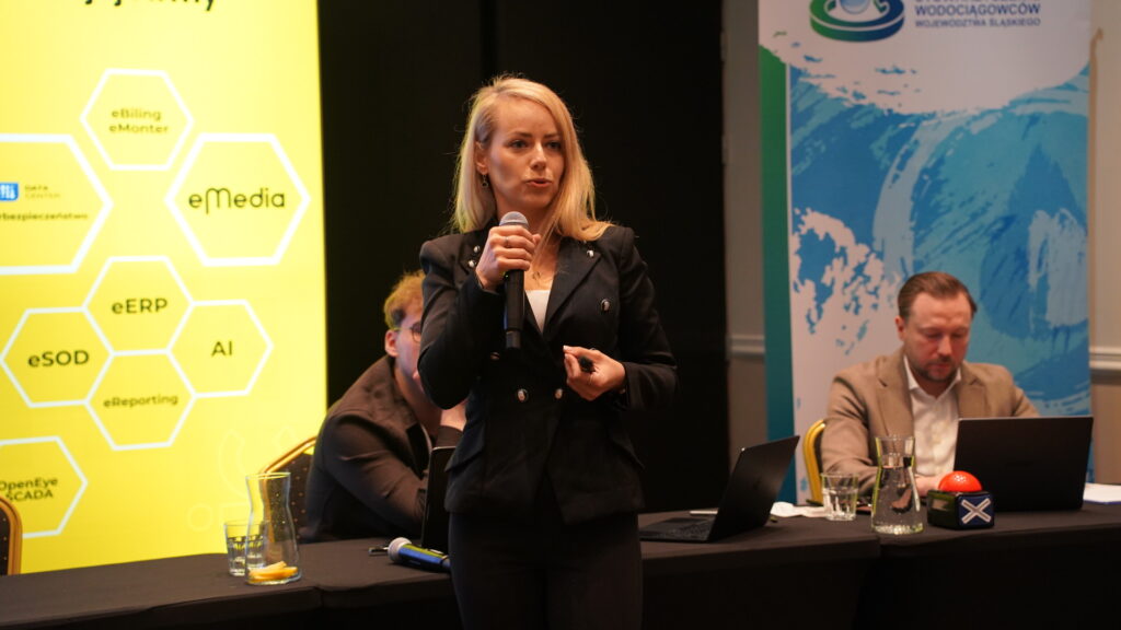 O roli danych w zarządzaniu infrastrukturą mówiła Asenata Sacha (HSB Stella), a Izabela Małota (MPWiK Piekary Śląskie) przedstawiła wykorzystanie danych w czasie rzeczywistym podczas usuwania awarii.